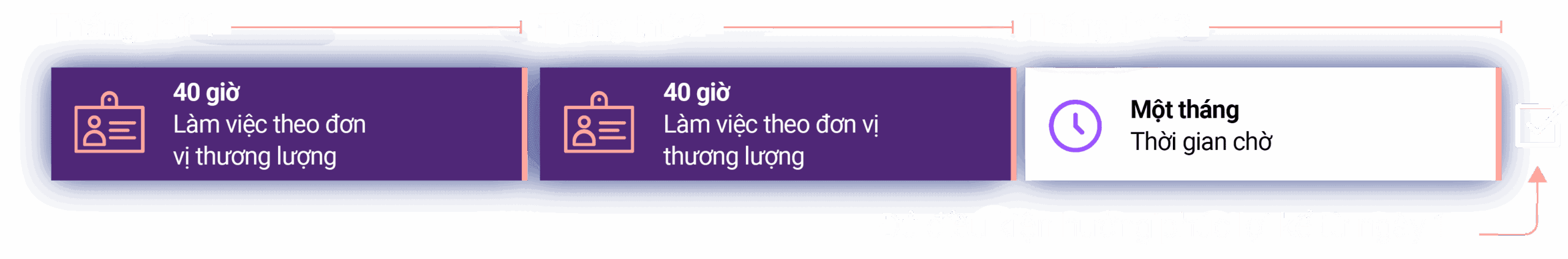 Bạn đã làm việc ít nhất 40 giờ đủ điều kiện* trong 2 tháng liên tiếp. Sau khi đáp ứng yêu cầu này và nộp bảng chấm công và/hoặc phiếu thanh toán tiền lương, bạn sẽ phải chờ 1 tháng. Trong khoảng thời gian chờ này, Tiểu Bang, Acumen hoặc PPL sẽ báo cáo số giờ làm việc của bạn lên Carewell SEIU 503.